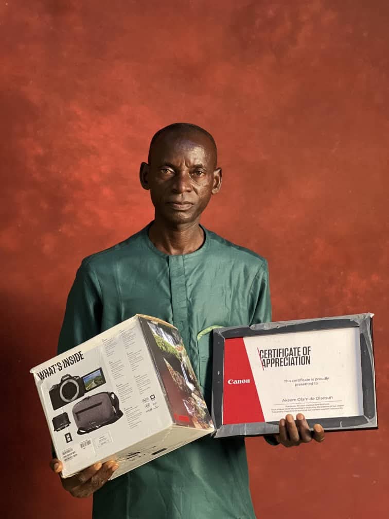 Mr. Adeshina shared the development on his social media platforms, writing, “Do you remember Mr. Akeem, the renowned Nigerian sports photojournalist with 25 years of experience, whose story I shared here and we crowdfunded for? I’m happy to share that Canon recognized his work and honoured him with a certification and a brand-new camera in support. Truly, a single picture can change a story.”