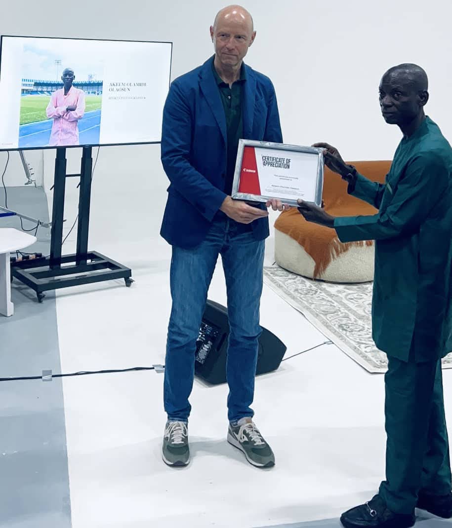 On Thursday, April 10, Canon officially recognised Olaosun’s contribution to sports journalism with a certification and the gift of a brand-new digital camera.