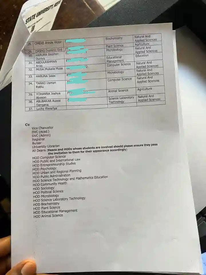 Nasarawa State University, Keffi (NSUK), has rusticated 37 students for one academic session over their alleged involvement in “criminal conspiracy, inciting disturbance of public peace, and cyber-stalking.”