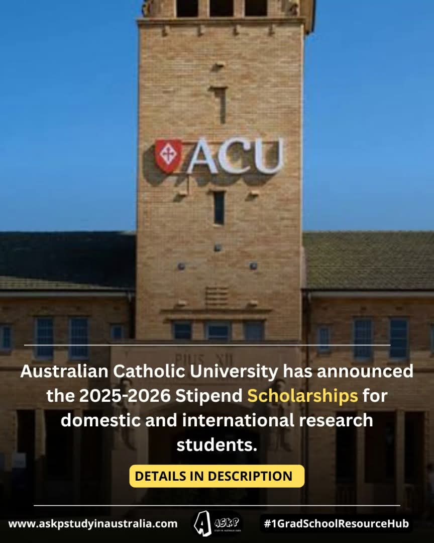Applications are currently open for ACU Stipend Scholarship 2025-2026 for Research Masters and PhD students