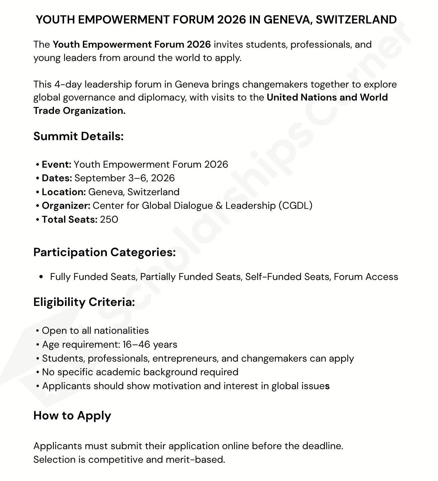 #ScholarshipsCorner #yefgeneva #YouthEmpowermentForum #YouthForum #yef2026