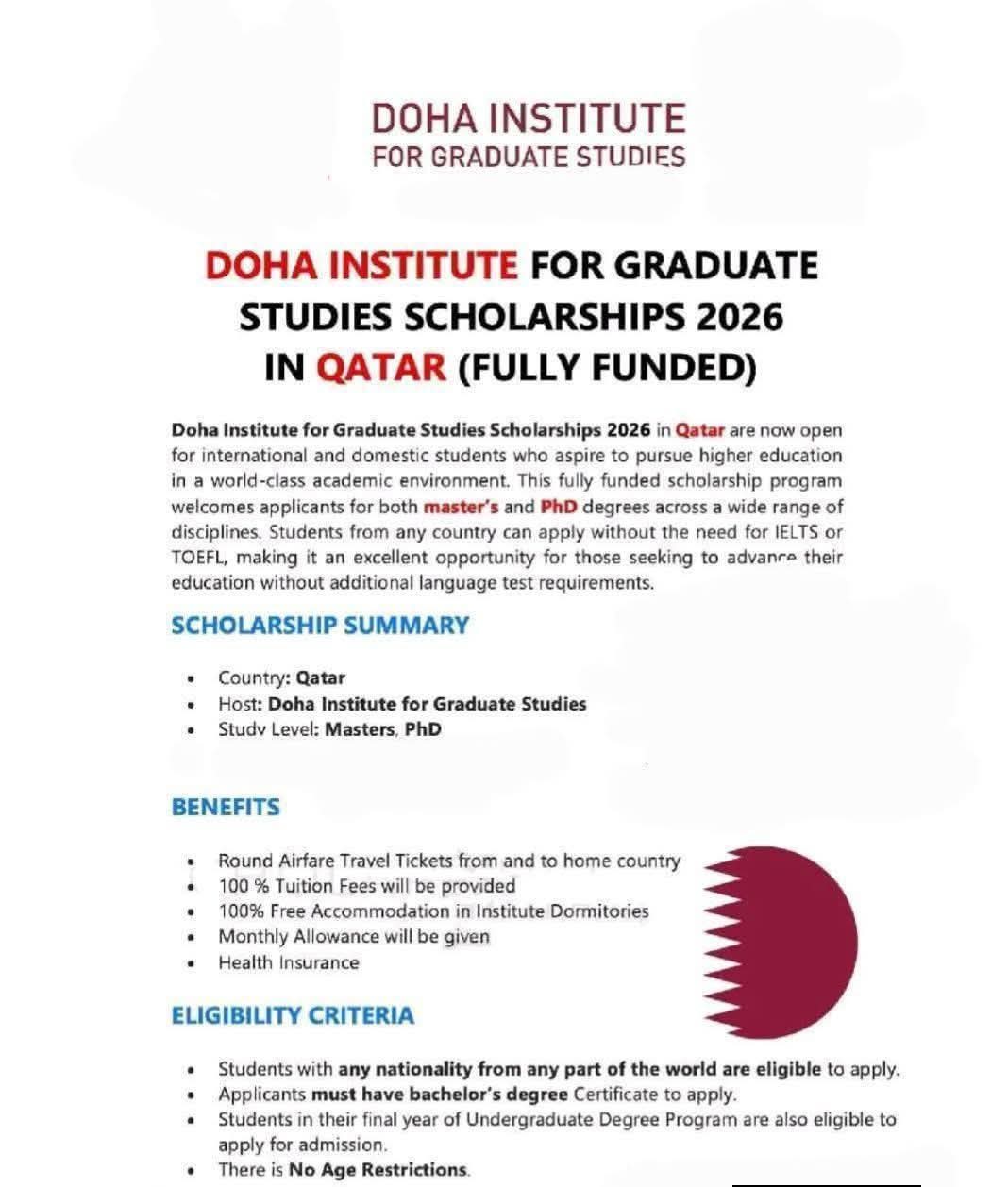 The Doha Institute For Graduate Studies Is Offering Fully Funded Scholarships For Outstanding Students From Any Country. These Scholarships Support Master’s And PhD Studies In Social Sciences, Humanities, Public Administration, Development Economics, And More.