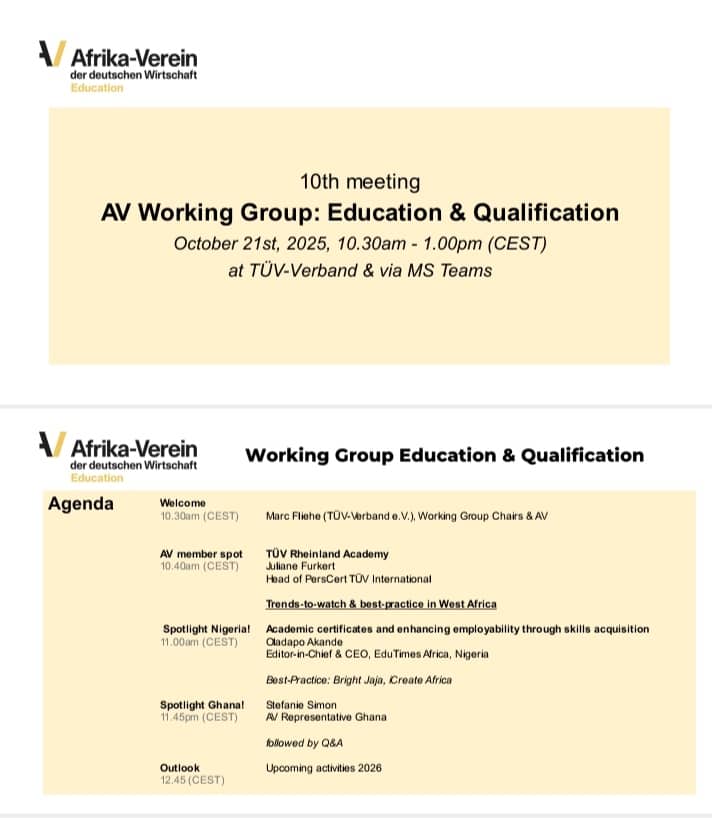 The event, which drew participation from more than 500 German companies with business interests across Africa, provided a platform for EduTimes Africa to spotlight Nigeria’s sweeping education reforms—particularly the Federal Government’s renewed focus on Technical and Vocational Education and Training (TVET) and the introduction of a free tuition and stipend-backed national skills scheme aimed at equipping millions of Nigerian youths for the labour market.