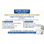 We’re hiring a smart, organized, and proactive Executive Assistant to support the Founder of Legacy Coaching & Counseling Ltd.
