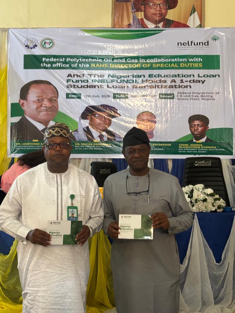 The Managing Director and Chief Executive of the Nigerian Education Loan Fund (NELFUND), Mr. Akintunde Sawyerr, has reaffirmed the Federal Government’s commitment to supporting the education of future oil and gas professionals. This follows a productive engagement with the Rector of the Federal Polytechnic of Oil and Gas, Bonny, Rivers State, Dr. Victor Okolobah, on Thursday, 12 February 2026.