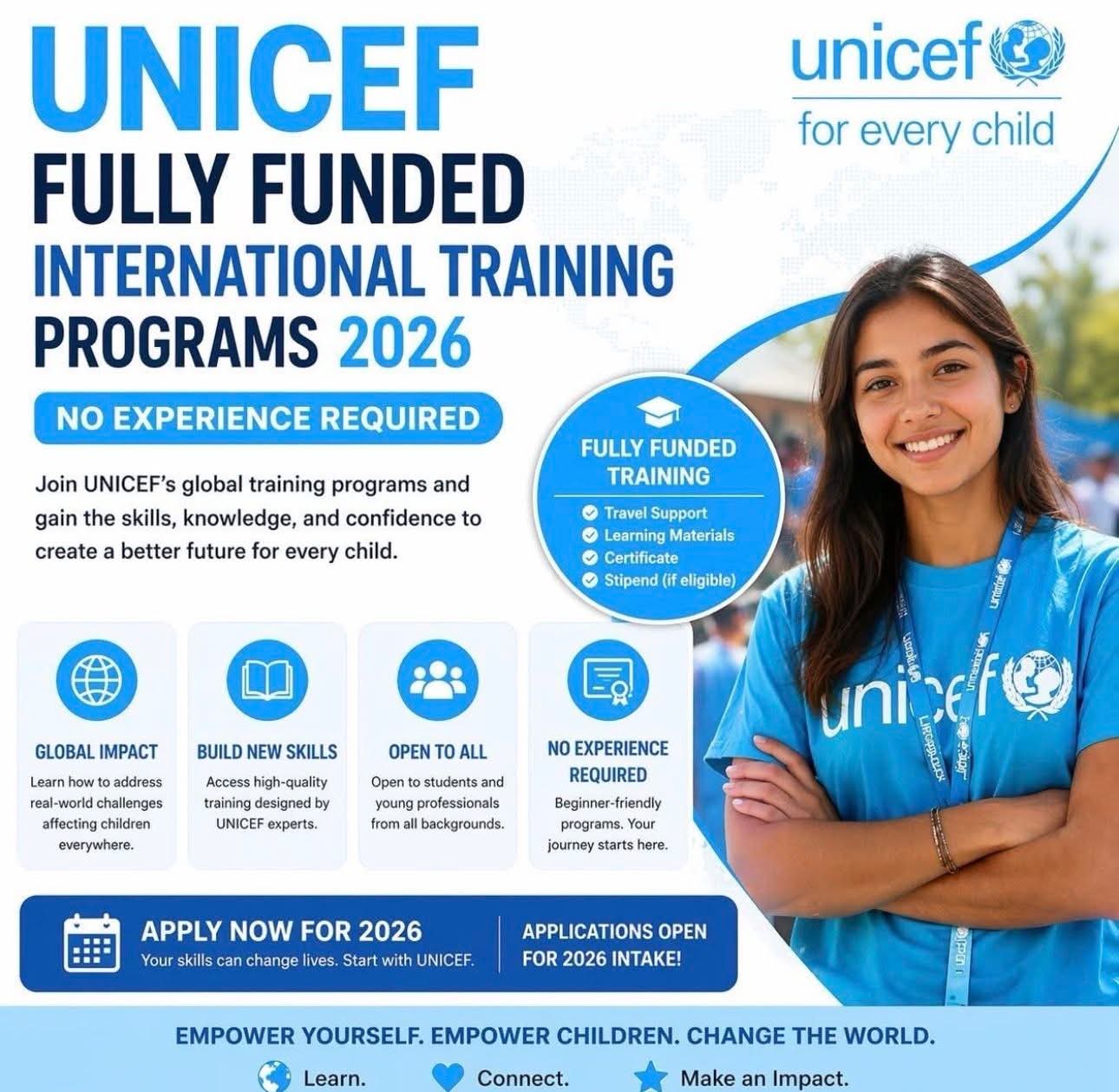 The UNICEF Fully Funded International Training Programs 2026 offer free, flexible, and globally accessible training opportunities for individuals interested in humanitarian work, global development, leadership, and communication.