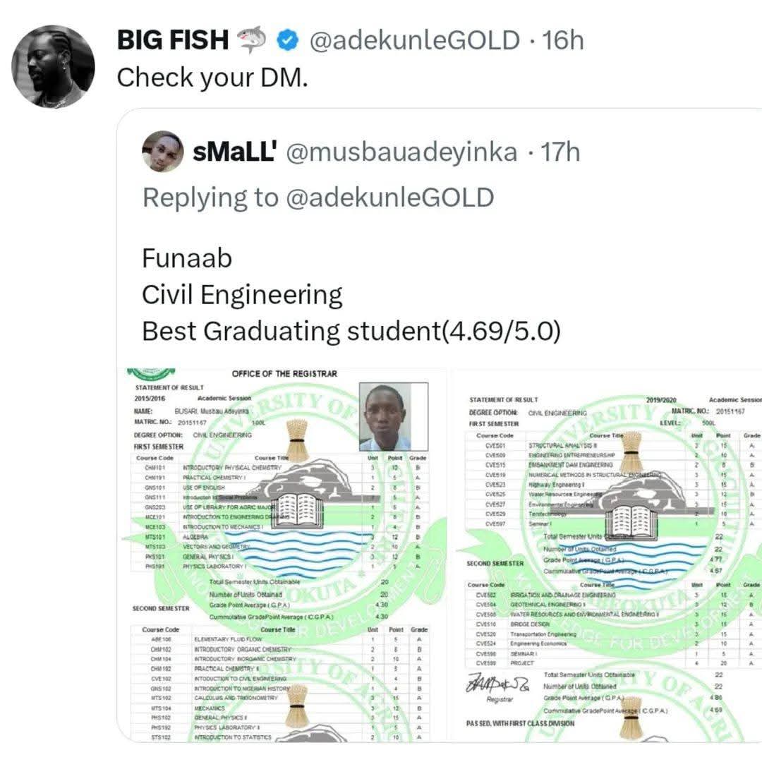 19-Year-Old Graduates with First Class in Computer Science from FUNAAB, Credits Faith and Focus for Success