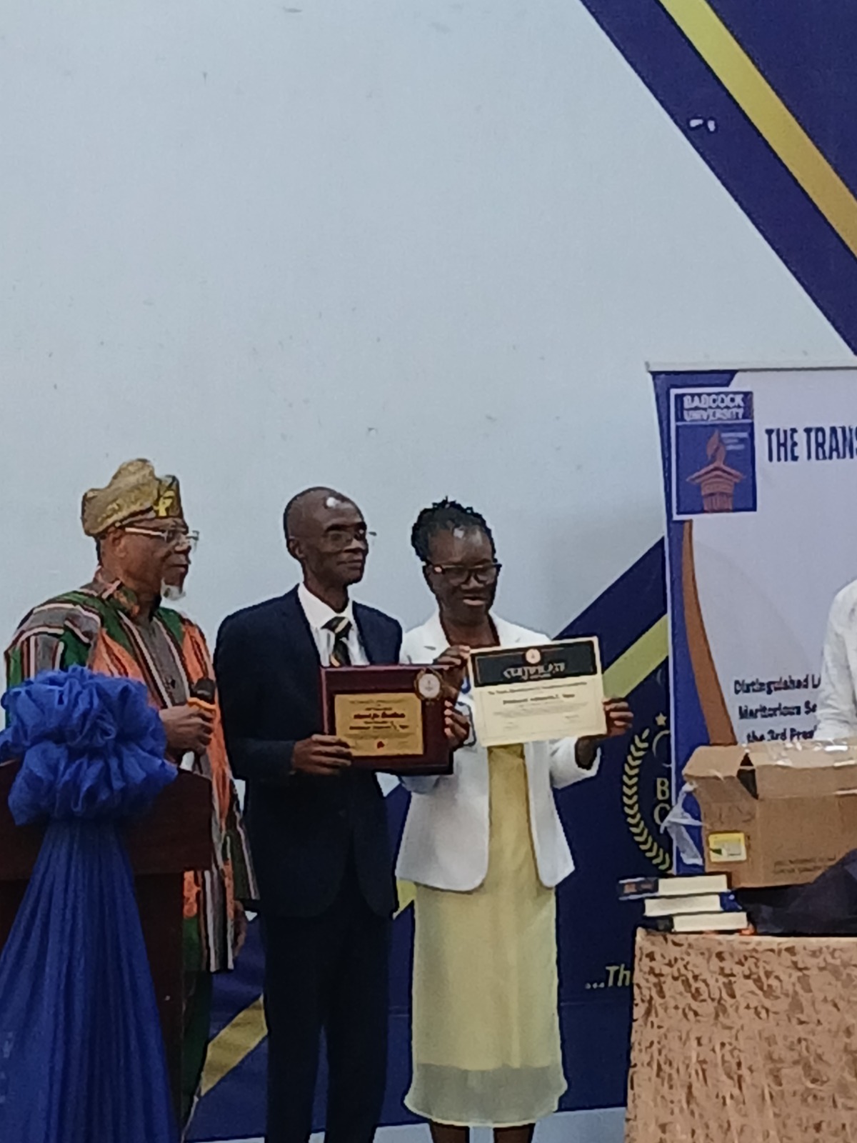 The lecture provided an opportunity for Falola to present Professor Tayo with the Thabo Mbeki Award for Leadership Excellence on behalf of the University of Texas at Austin, with approval from former South African President Thabo Mbeki. The award recognises outstanding leaders dedicated to Africa’s renaissance. Additionally, His Imperial Majesty Professor Fuankem Achankeng I, Paramount Ruler of the Atoabechied Kingdom in Cameroon, conferred on Tayo the traditional title NkemMiaAkateh in recognition of his distinguished leadership.