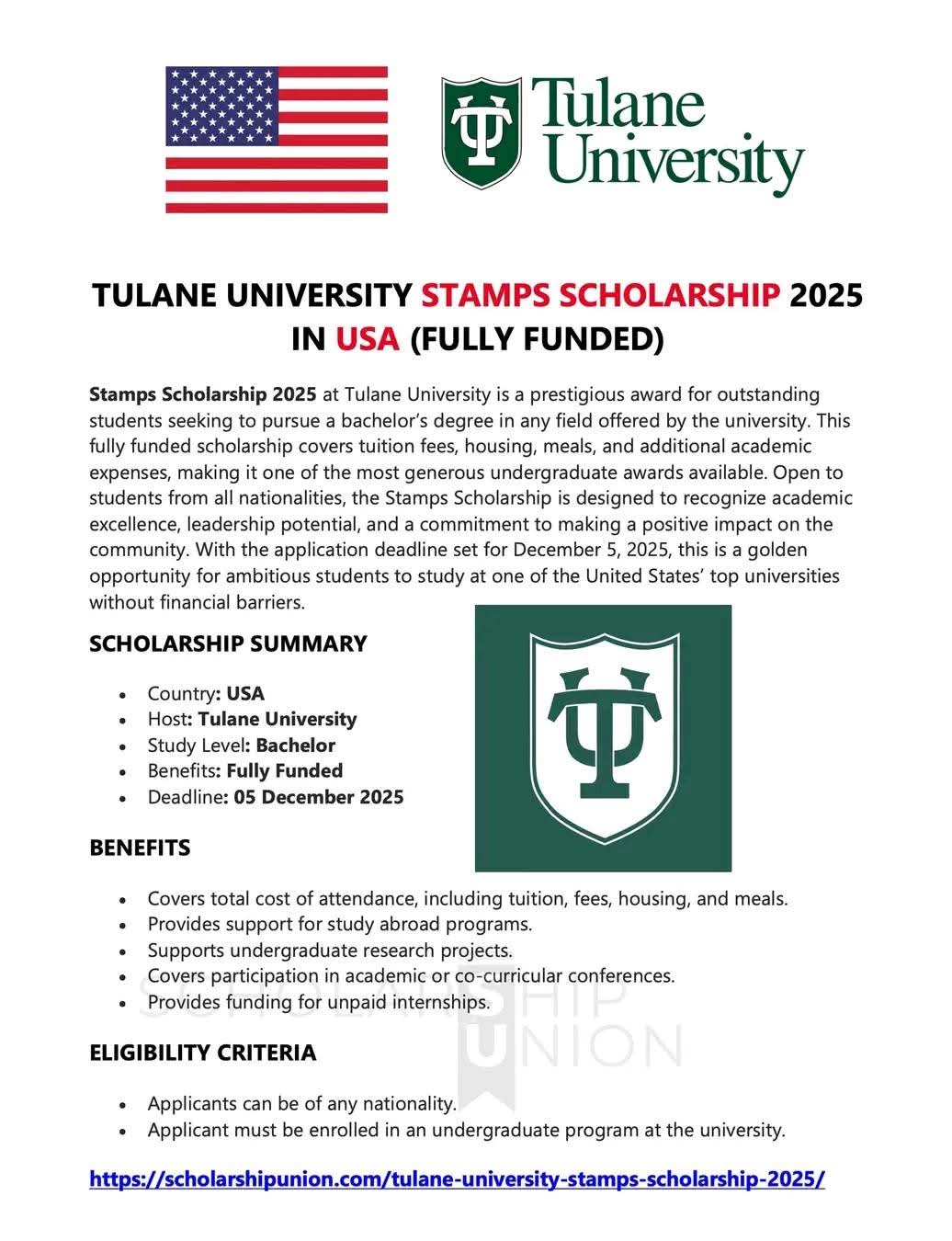 >>>Apply Now, Link: https://www.euromagopportunities.org/scholarships/tulane-stamps-scholarship-2025-fully-funded-in-usa