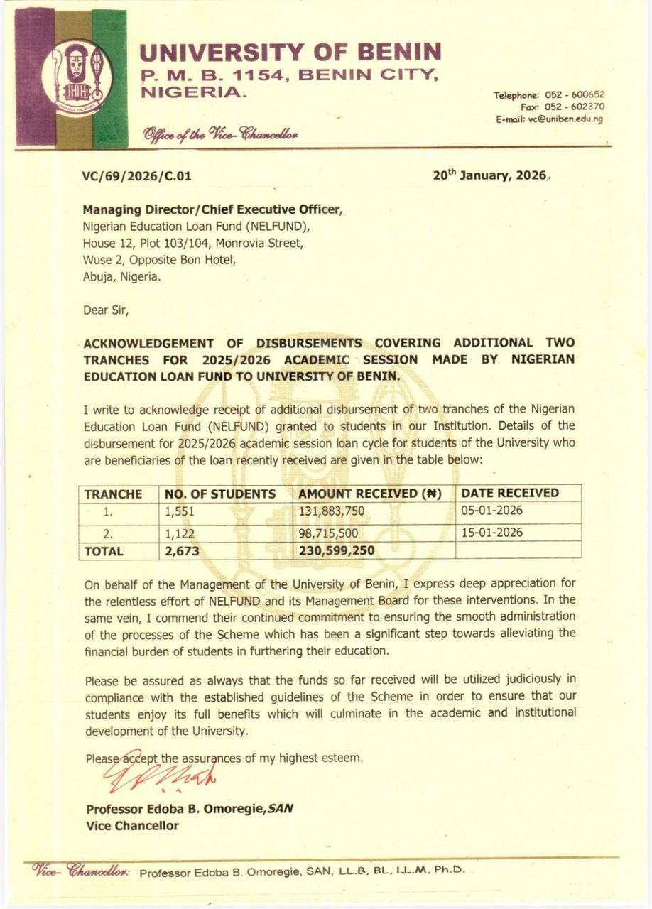 • Breaking: NELFUND Extends the Application Deadline for 2025/2026 Academic Session