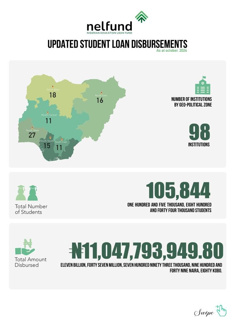 As of October 2024, the Nigerian Education Loan Fund (Nelfund) has disbursed over N11 billion to students across 98 institutions nationwide.